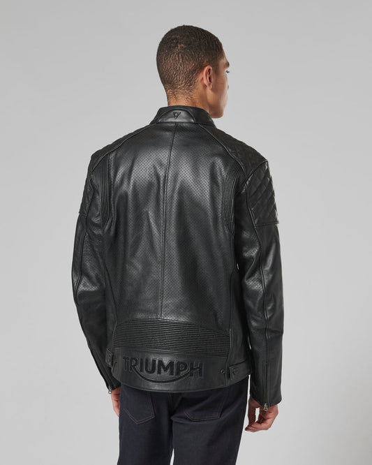 Triple Perforated Leather Jacket in Black